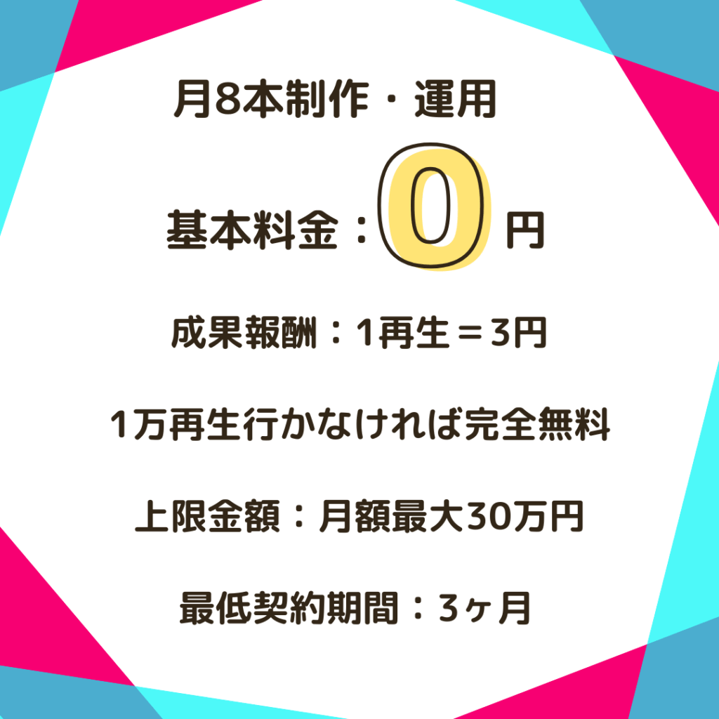 A. 一切必要ありません。撮影・制作・運用すべて込みで成果報酬のみです。